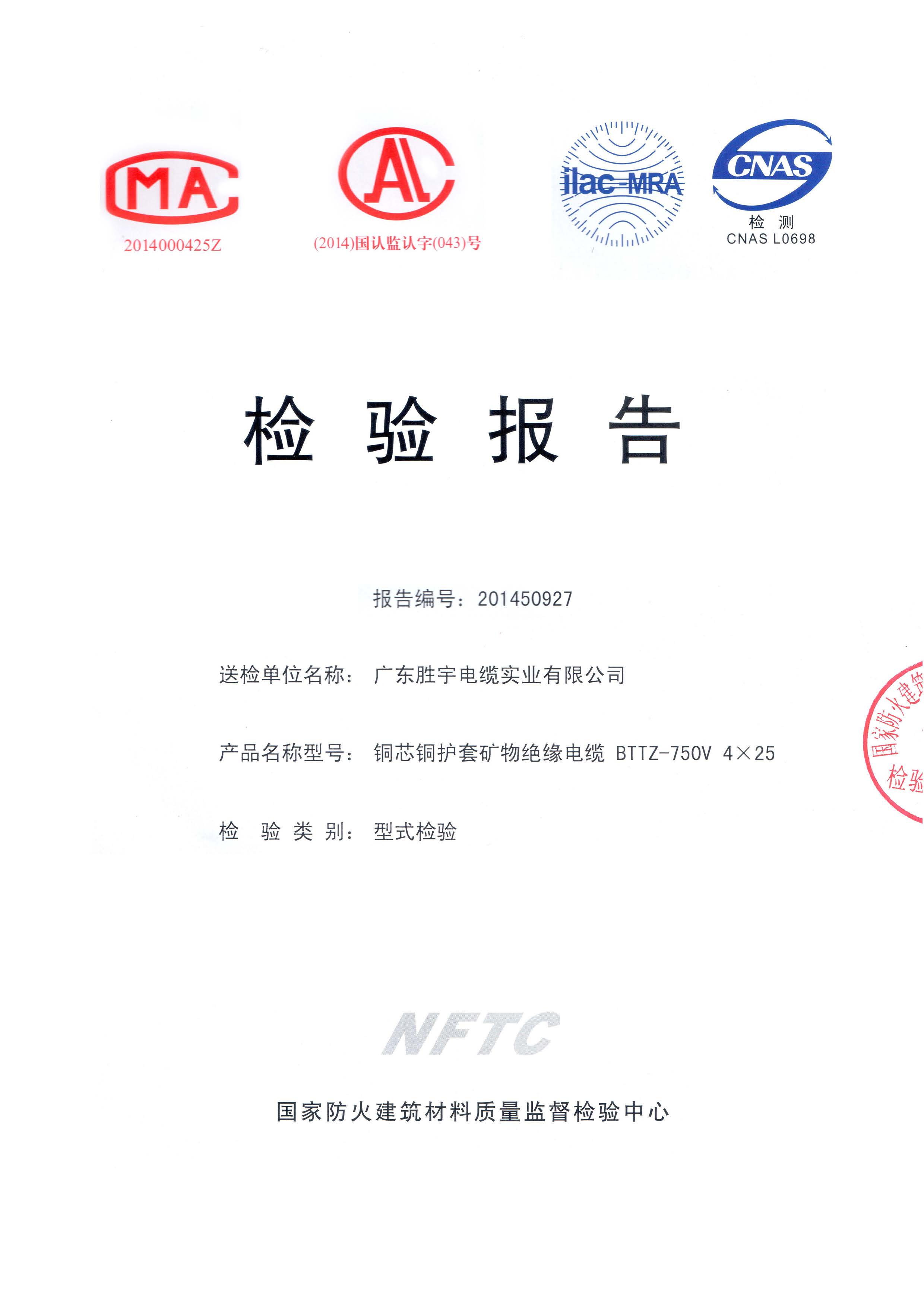 標準中的3個試驗,每做一個新實驗都得換一個新的樣品,勝宇礦物絕緣電纜可以輕松遵守和承受最繁重的等級類別C、W、Z,甚至3個試驗中整個過程中使用同一個電纜樣品不需更換。