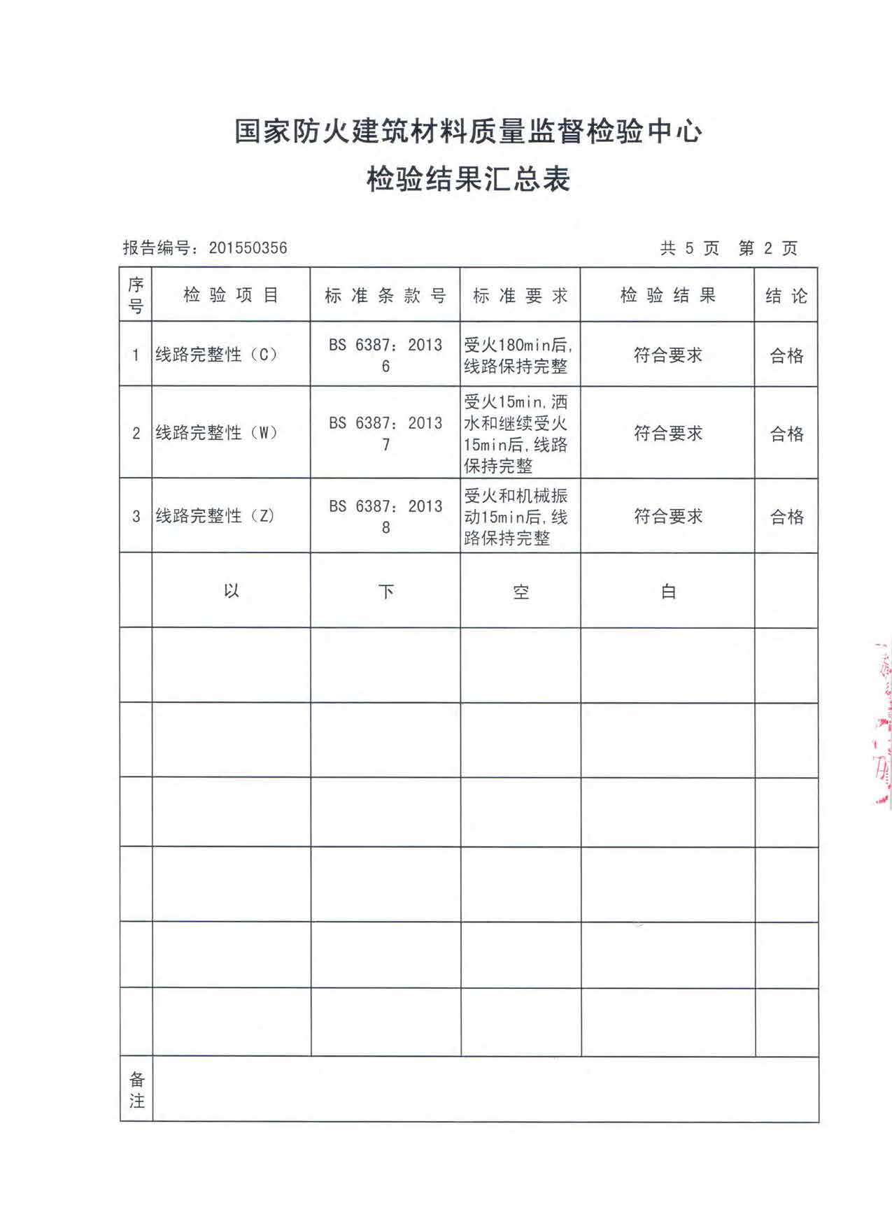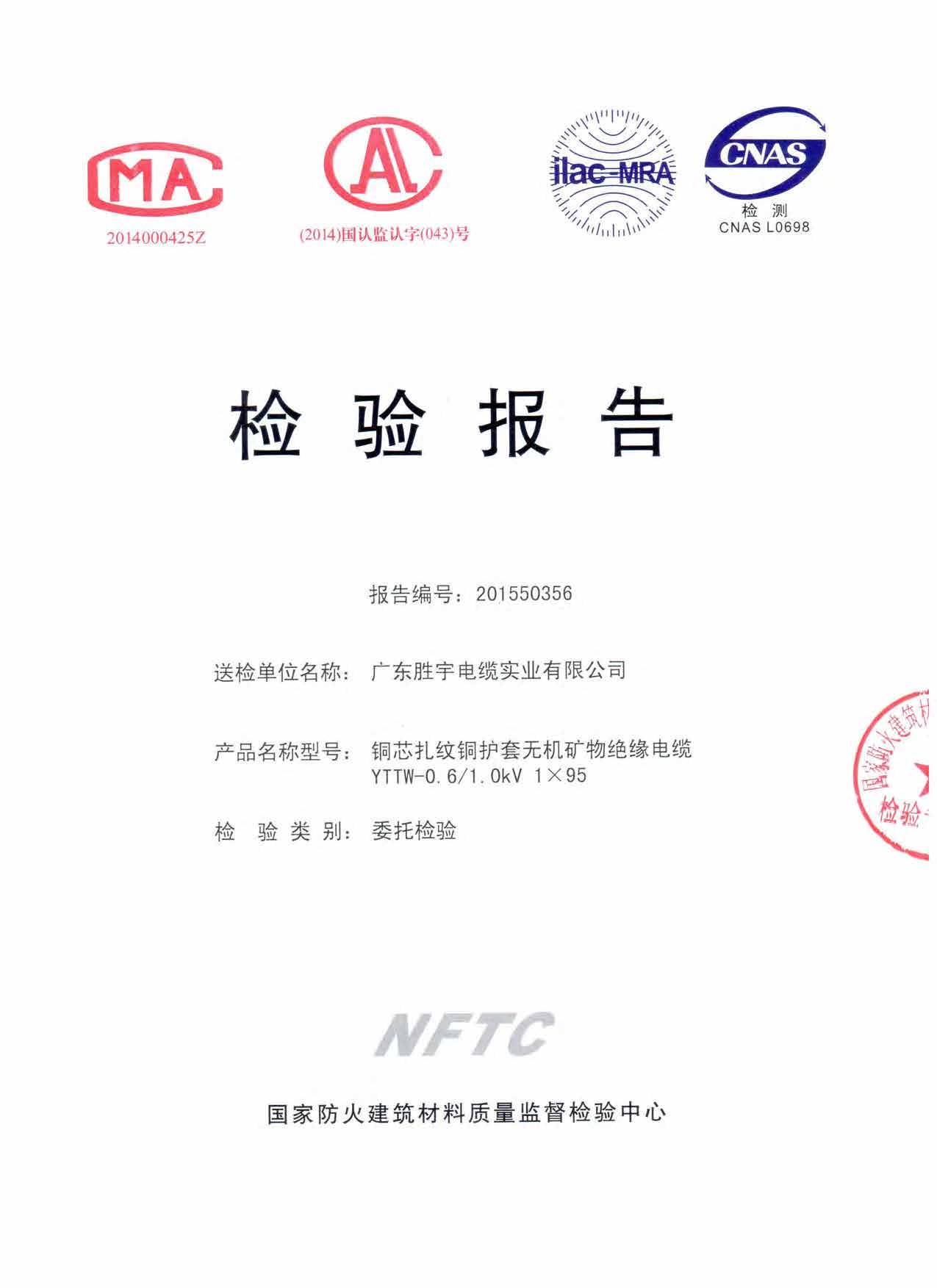 標(biāo)準(zhǔn)中的3個(gè)試驗(yàn),每做一個(gè)新實(shí)驗(yàn)都得換一個(gè)新的樣品,勝宇礦物絕緣電纜可以輕松遵守和承受最繁重的等級(jí)類別C、W、Z,甚至3個(gè)試驗(yàn)中整個(gè)過程中使用同一個(gè)電纜樣品不需更換。